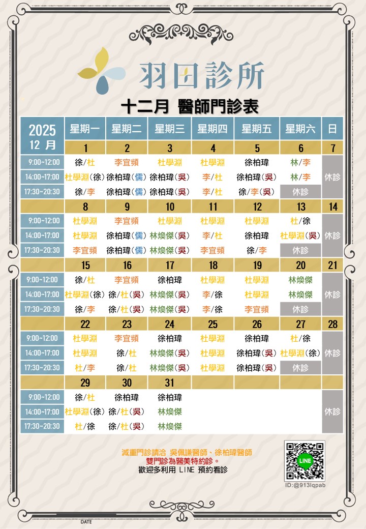 減重門診請洽 吳佩謙、徐柏偉醫師
