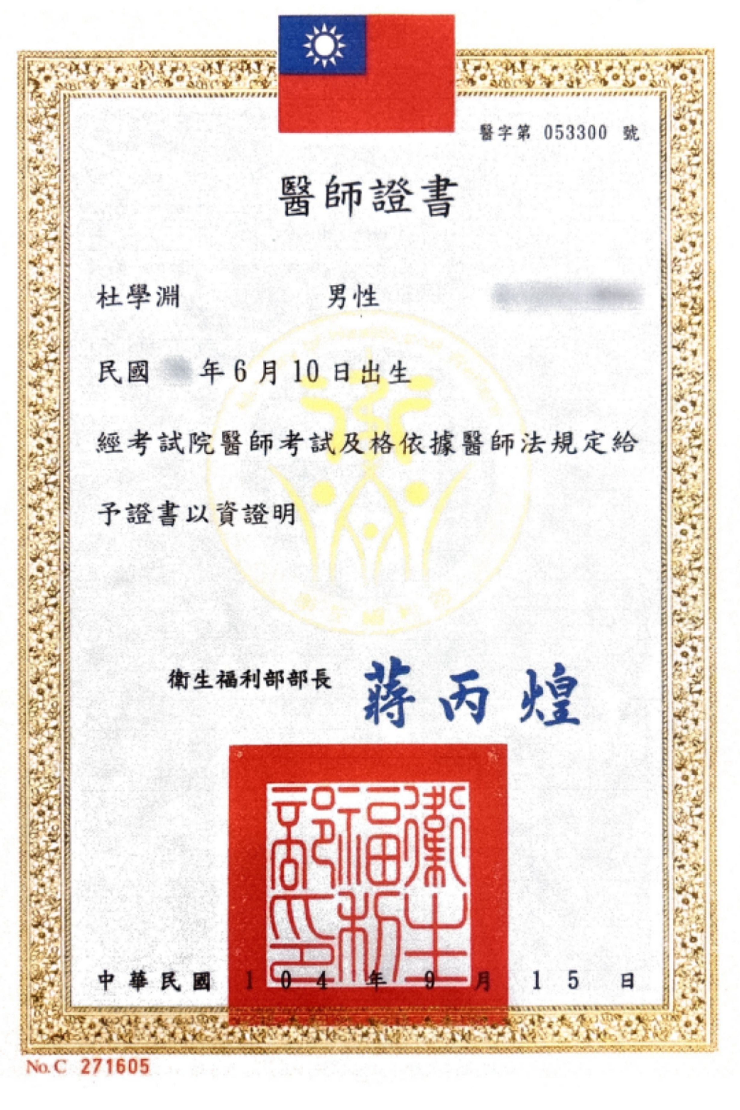 中國醫藥大學醫學系畢業